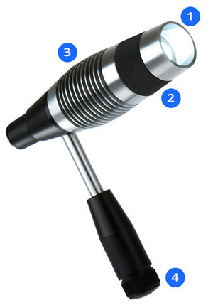 The ergonomic handle with rheostat lets you fine-tune brightness with infinite precision.